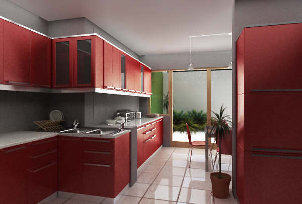 Mobiliario para cocina en Melamine, tablero con porcelanato