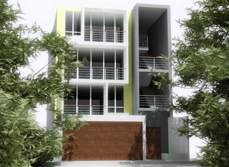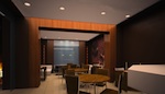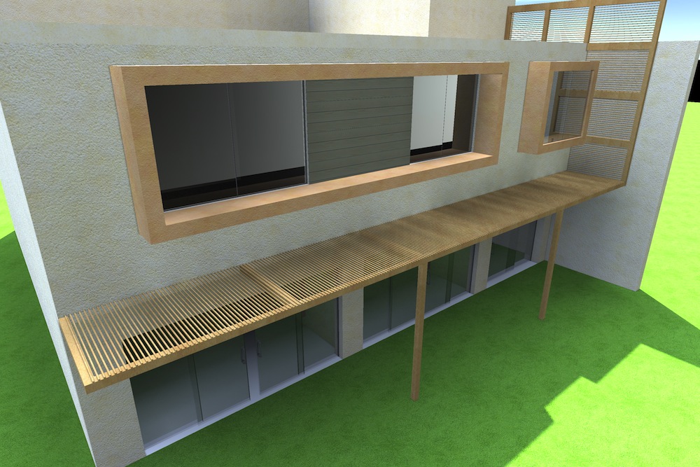 Adecuación de atrio, con enchape de madera y pintado con acabado al duco