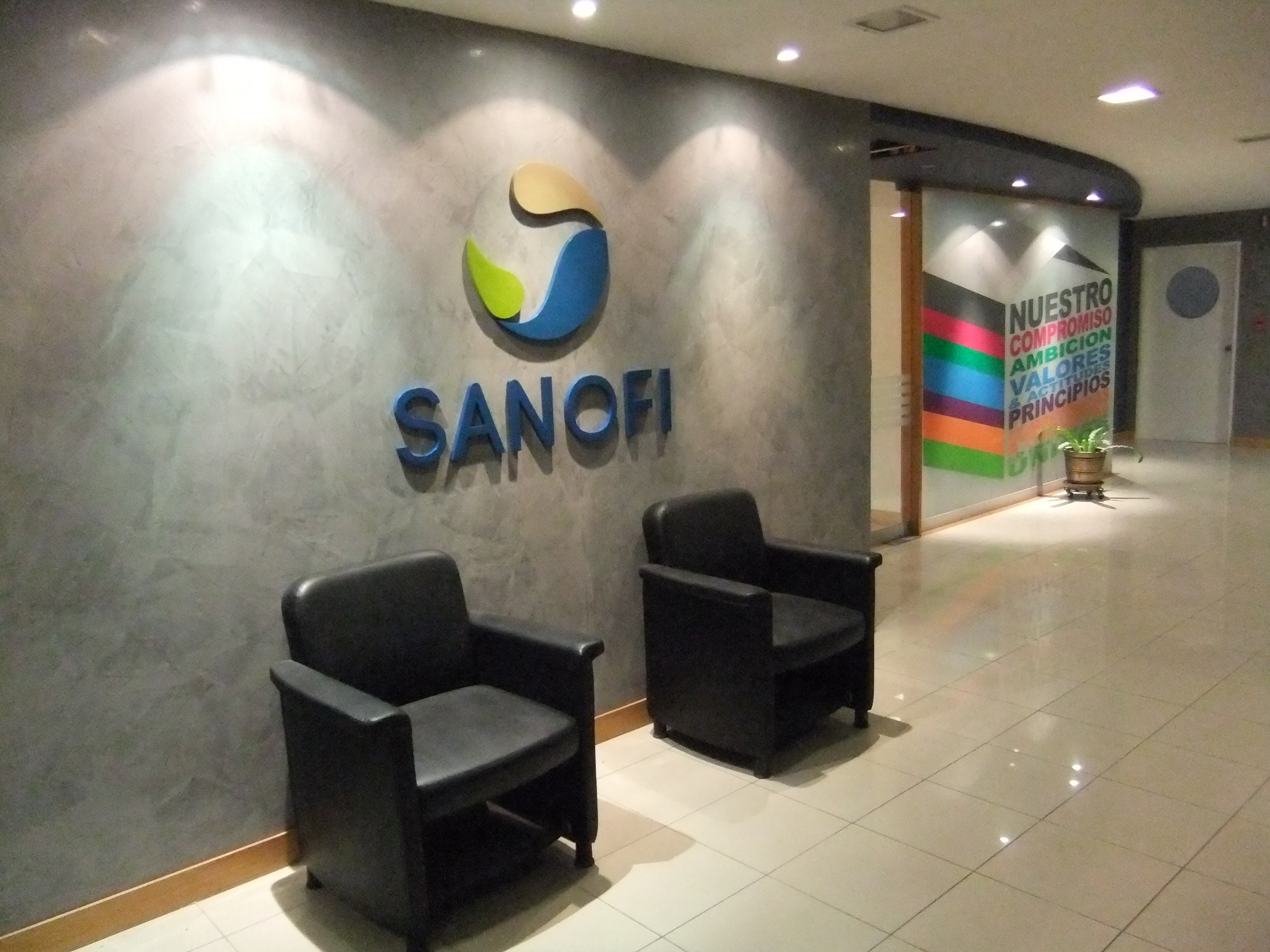 Aplicación de estuco veneciano, logo en MDF con acabado en poliuretano y vinil de color